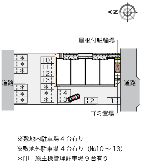 | 部屋向き | 西 | 駐車場 | 有り 0.495万円 |