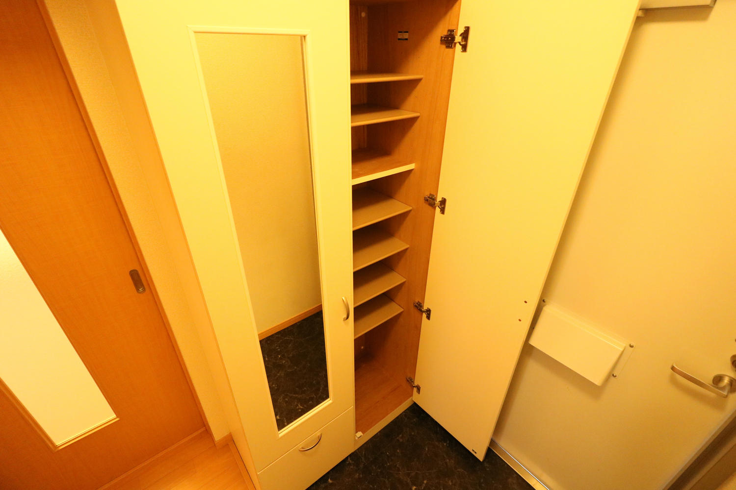 『玄関』大型シューズボックス完備により女性でも収納安心