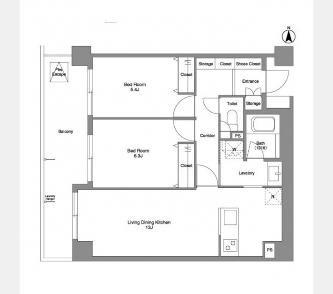 | 間取り(内訳) | 2LDK | 専有面積 | 55.36㎡ |