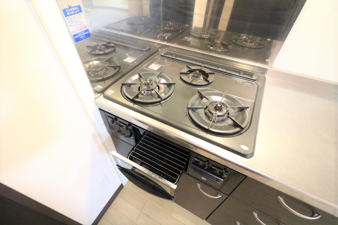 『キッチン』ワイドキッチン3口コンロ(ガス専用)お掃除が楽チン