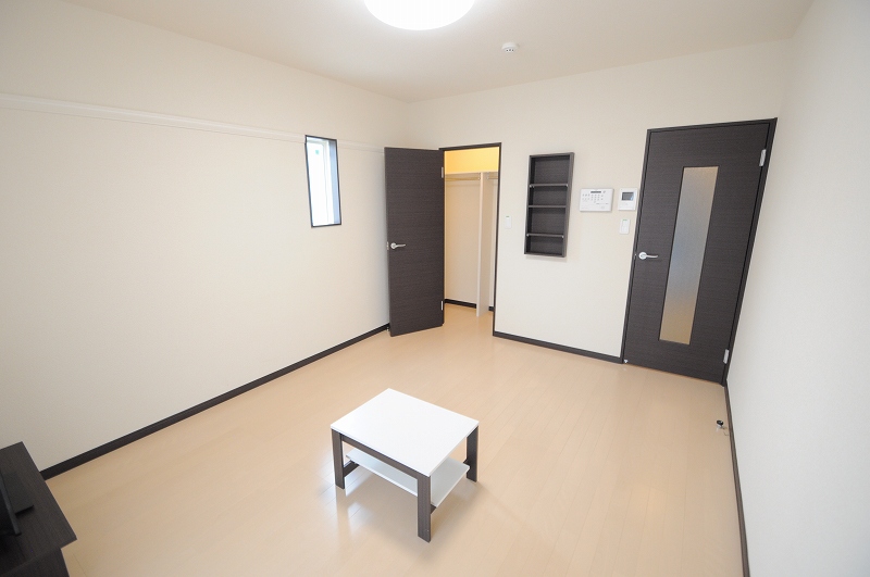 『居間・リビング』右の扉を開けるとキッチン、左の扉はクローゼットです!
